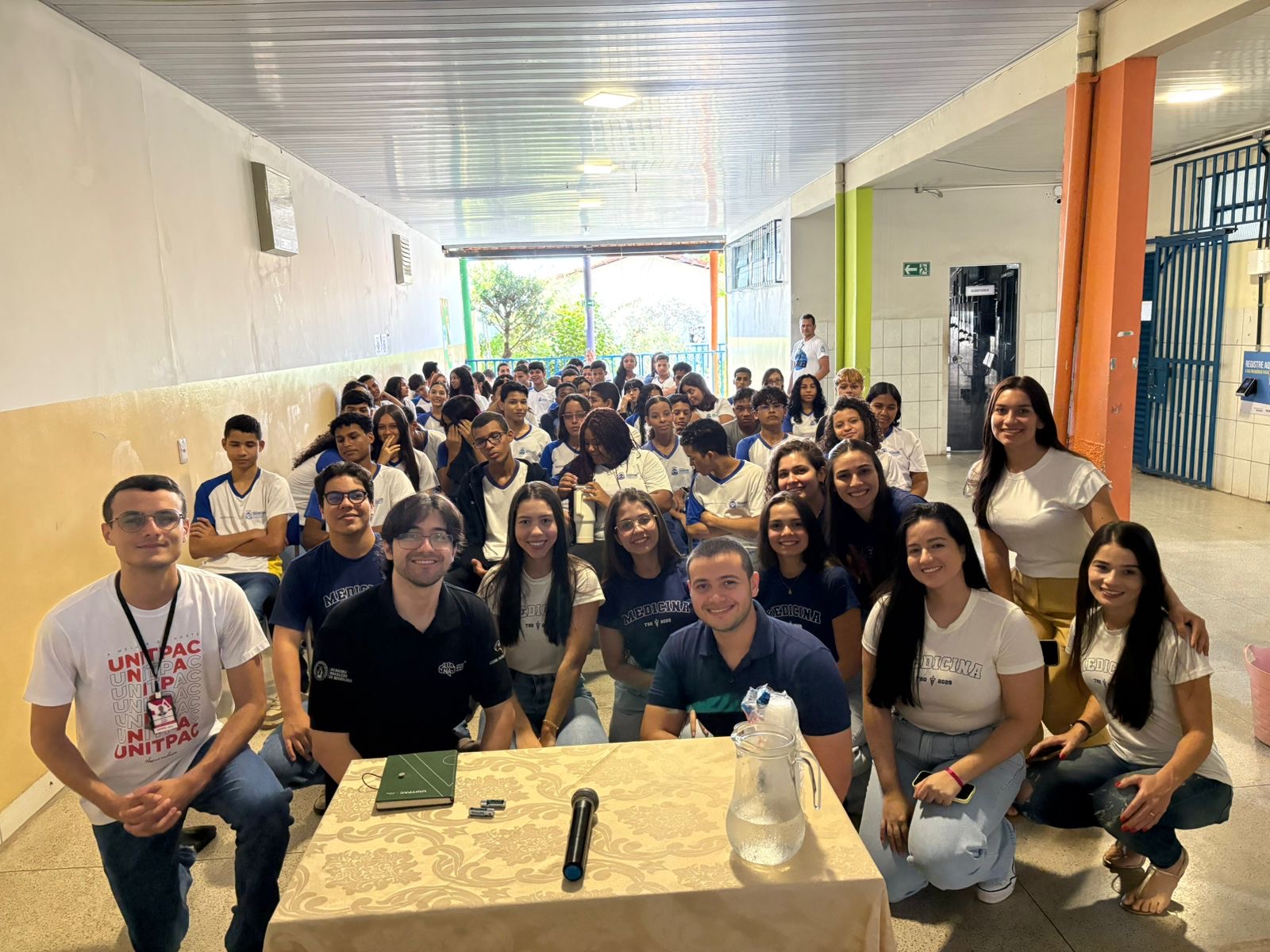 Acadêmicos dos cursos de Medicina e Psicologia realizaram, no dia 23 de outubro, uma palestra sobre Saúde Mental na Adolescência com os alunos do 1º ano do Ensino Médio da Escola Estadual Francisco Máximo.