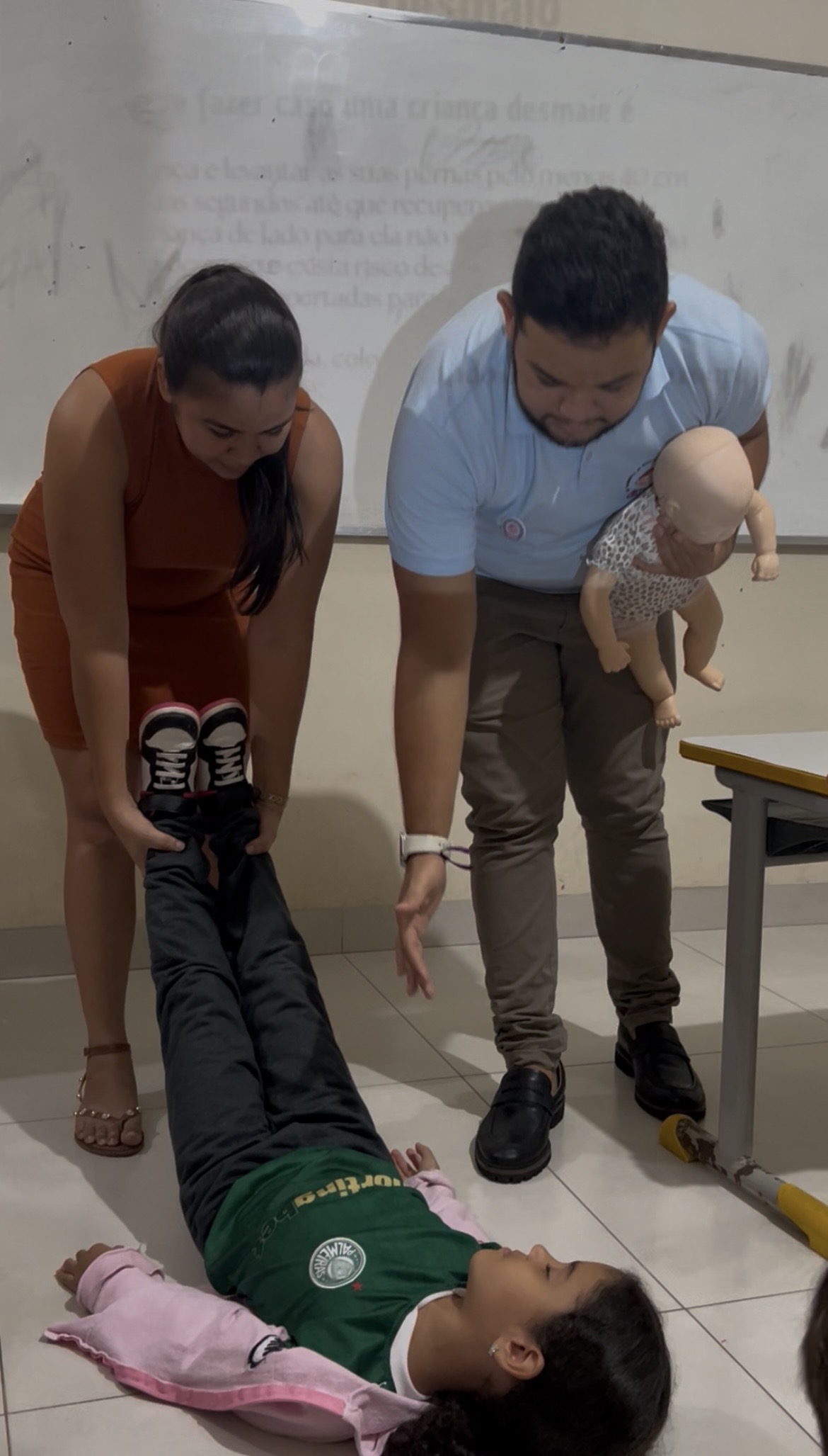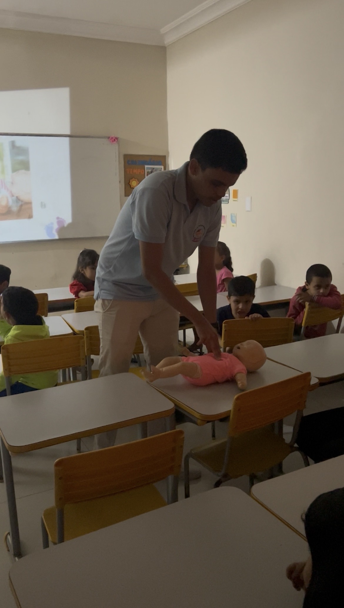 Durante a ação, foram apresentadas medidas preventivas e técnicas básicas de primeiros socorros, contribuindo para ampliar a conscientização e promover mais segurança no ambiente escolar. A participação ativa dos envolvidos reforçou o impacto positivo da iniciativa na preparação de cuidadores e educadores.