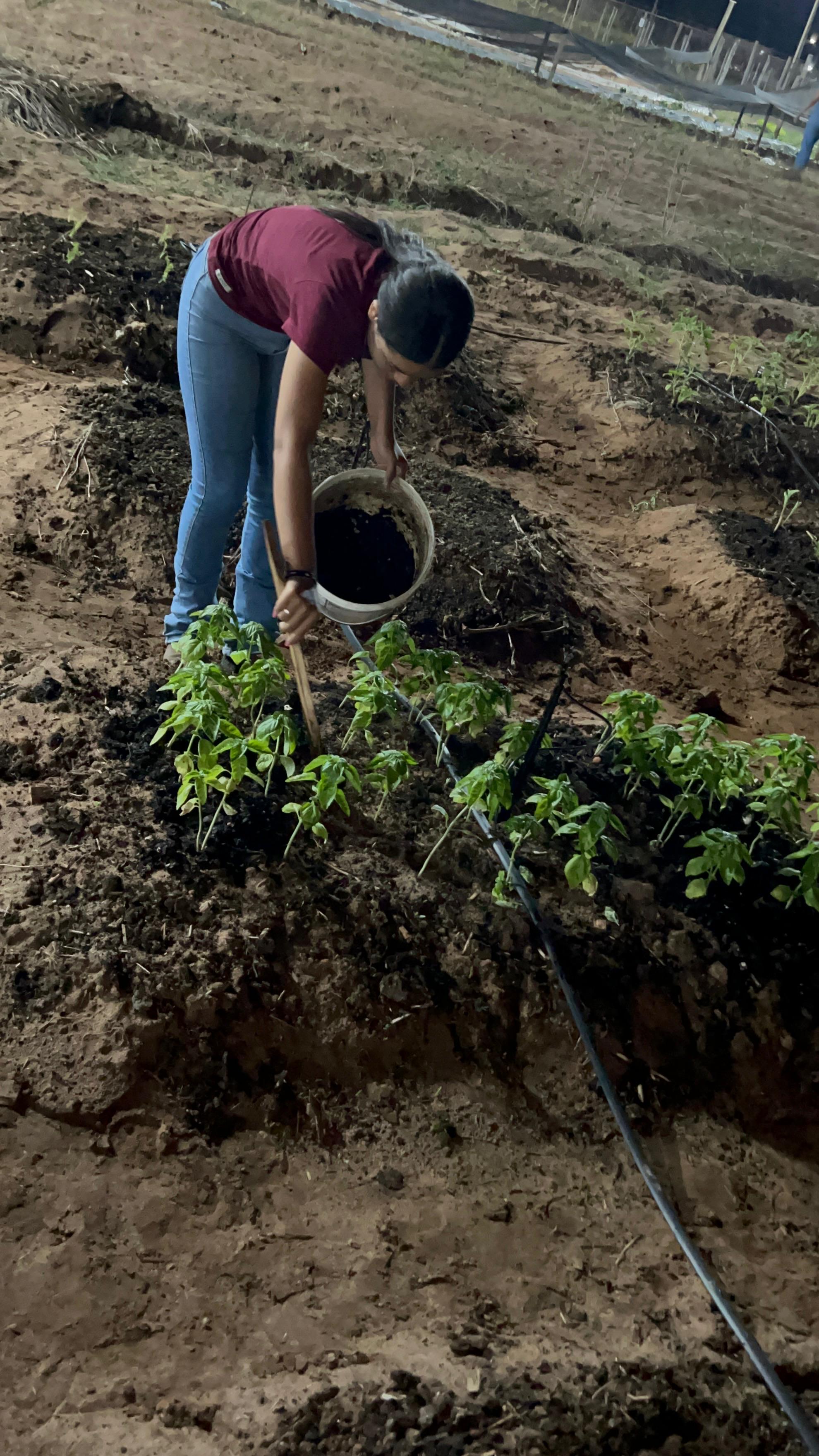 A compostagem foi utilizada como ferramenta educativa e sustentável para transformar restos de alimentos, folhas e outros resíduos orgânicos em um adubo natural rico em nutrientes. Para isso, os alunos construíram uma composteira formada por três baldes adaptados, permitindo a decomposição eficiente dos resíduos e a captação do chorume.