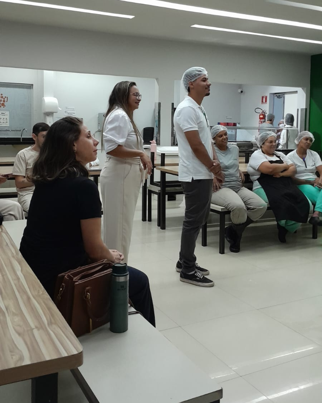 A iniciativa integrou as atividades da disciplina de Estágio Núcleo Comum II, sob orientação da professora Shimony Coelho, e teve como público os colaboradores do setor de cozinha da empresa Mais Sabor, que atua na unidade hospitalar.