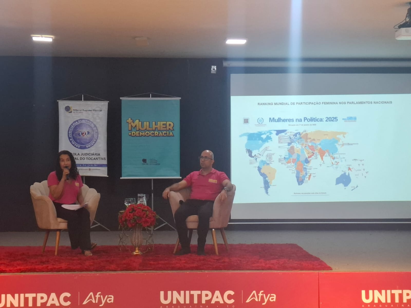 No dia 20 de outubro, o curso de Direito do UNITPAC Araguaína recebeu o evento “+Mulher +Democracia: fortalecendo a democracia em Araguaína”, uma iniciativa do Tribunal Regional Eleitoral do Tocantins (TRE-TO), realizada por meio da Escola Judiciária Eleitoral (EJE/TO).