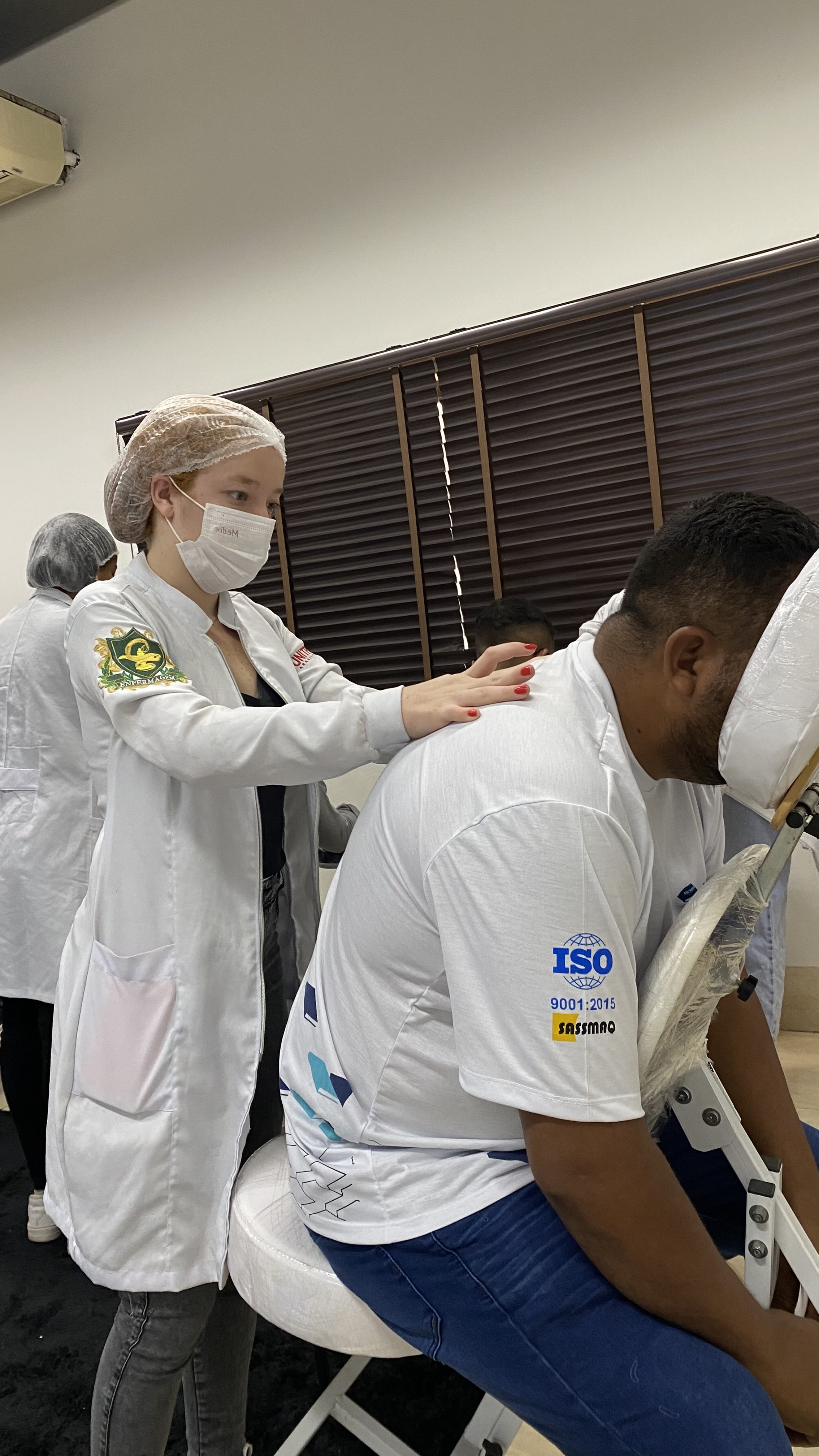 Alunas promovem massagem Quick para motoristas em evento de conscientização sobre segurança no trânsito