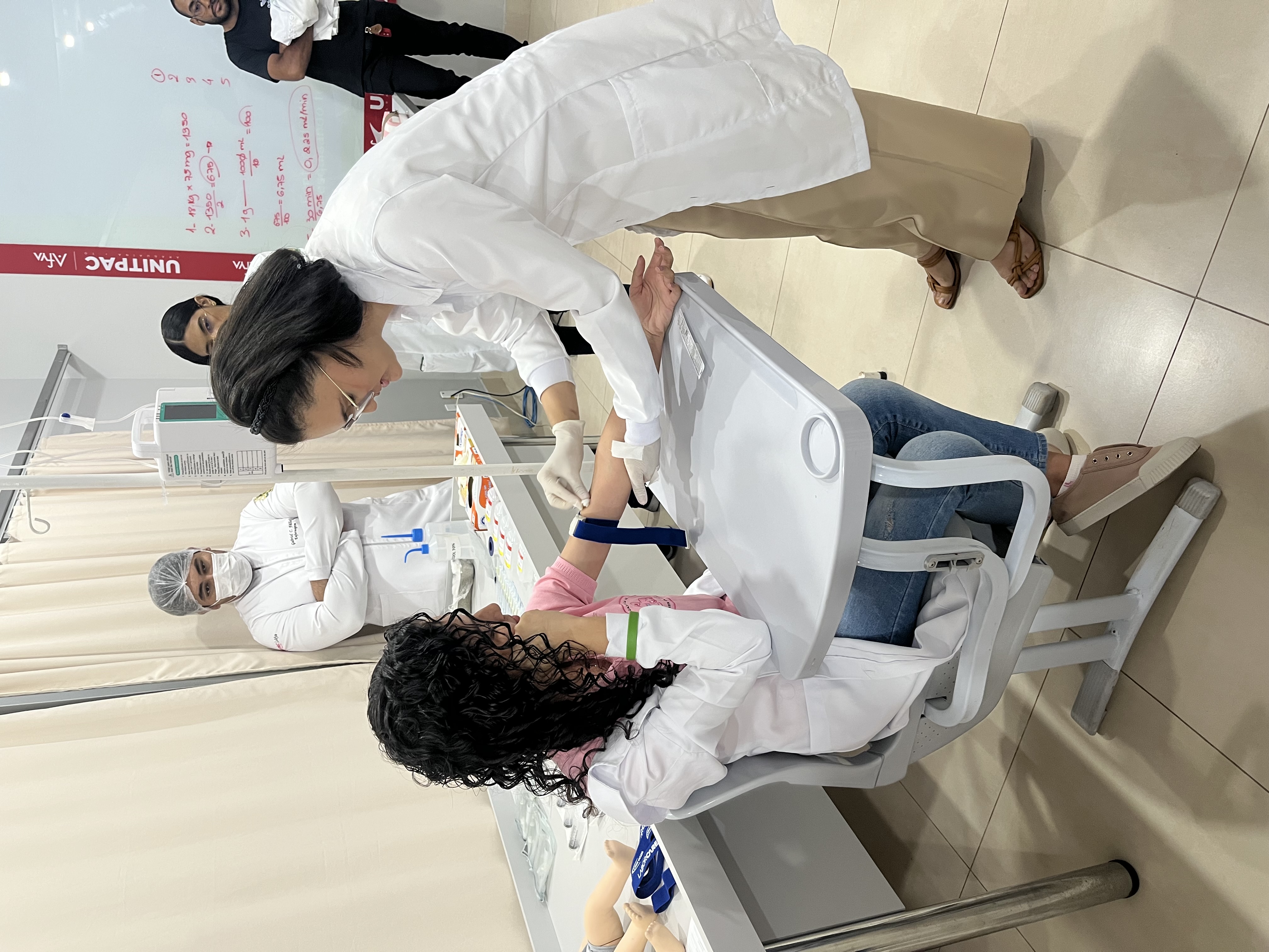 A atividade proporcionou aos participantes um momento de aprendizado completo, unindo a teoria sobre o cálculo seguro de medicamentos em crianças com a prática de treinamento em punção venosa.